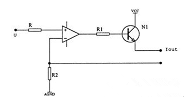 圖中N為運算放大器,V為晶體三極管,擴大運算放大器的輸出電流。