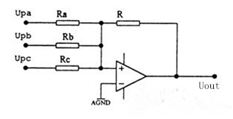 三相有功功率變送器實際上是把二個(二元件)或三個(三元件)單相功率變送器的輸出電壓相加,從而得到三相功率變送器,其基本電路如下: