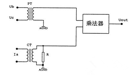 這類變送器雖然應用較少,但是它是三相有功/無功功率變送器的基礎,因此先介紹它的基本原理,它的基本電路如下: