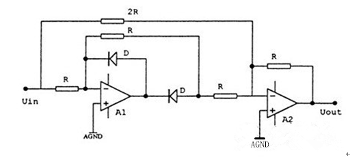 這實際上是一個精密全波整流電路,它的特點是線路簡單和線性度好,但缺點是波形失真度對它的影響較大。這在某些波形失真較大的電路中(如負載為可控硅等),和采用真有效值變換的測量儀器比對時,有可能產生一定的誤差,這在現(xiàn)場在線校驗這類變送器時,如果標準表是真有效值變換的其誤差就有可能和實驗室測試的結果不一致,因此對該類變送器的校準,應在波形失真度《0.2%的電源上進行。