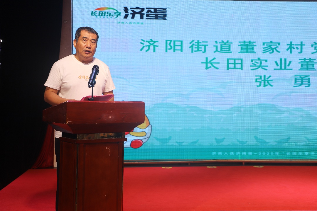濟(jì)陽區(qū)副區(qū)長董鵬將“濟(jì)蛋”喻為品牌賦能鄉(xiāng)村振興的濟(jì)陽樣本。濟(jì)陽區(qū),作為省會濟(jì)南的“北大門”,近年來,走出了設(shè)施農(nóng)業(yè)增效之路、畜牧集群崛起之路、品牌矩陣塑強(qiáng)之路, 連續(xù)三年進(jìn)京舉辦“好味知濟(jì)”區(qū)域公用品牌推介會,品牌影響力持續(xù)擴(kuò)大,濟(jì)陽農(nóng)產(chǎn)品正闊步從田間走向世界餐桌。這份成績單的背后,是廣大經(jīng)營主體的實干擔(dān)當(dāng)。他禮贊長田實業(yè)張勇董事長帶領(lǐng)團(tuán)隊在市場開拓、聯(lián)農(nóng)帶農(nóng)中的創(chuàng)新貢獻(xiàn),指出“長田樂享濟(jì)蛋”是其品質(zhì)追求的體現(xiàn),承載著濟(jì)陽農(nóng)產(chǎn)品高端化與服務(wù)美好生活的期望,并邀請來賓共同品鑒助力品牌走進(jìn)千家萬戶。
