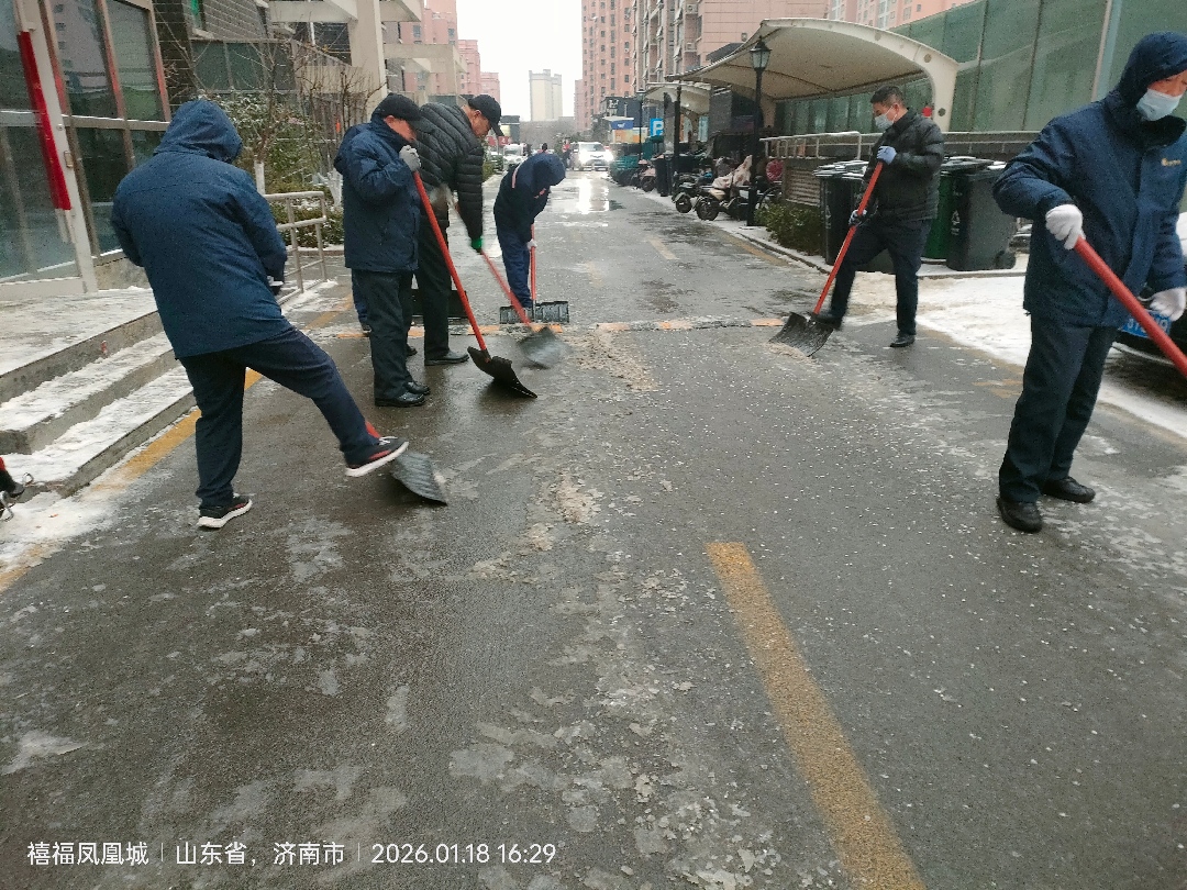 長田物業(yè)禧福鳳凰城項目部,聚焦業(yè)主出行路。結冰路段的隱患,在物業(yè)人的忙碌中消解。沒有驚天動地的舉措,只有腳踏實地的堅守,護佑每一次清晨的出發(fā)、日暮的歸途。