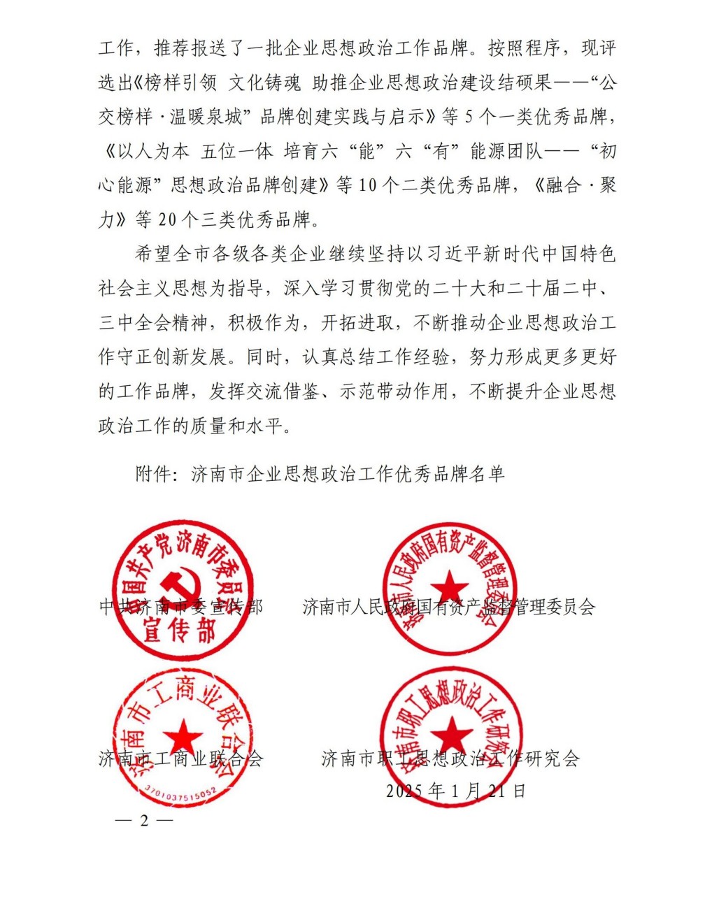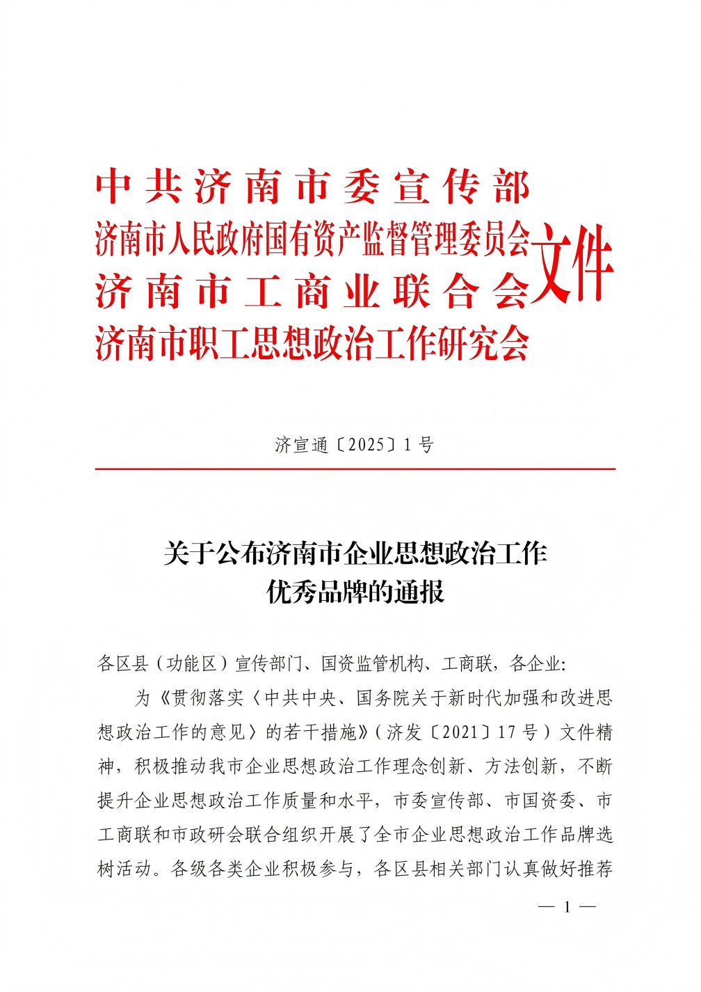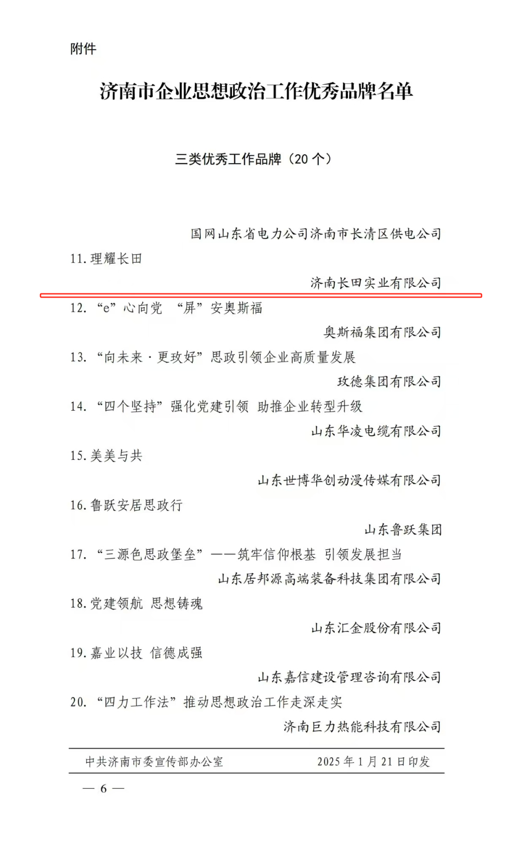 近期,市委宣傳部、市國資委、市工商聯(lián)和市政研會聯(lián)合組織開展了全市企業(yè)思想政治工作品牌選樹活動,濟(jì)南長田實(shí)業(yè)有限公司創(chuàng)建的思想政治工作品牌——“理耀長田”榮獲濟(jì)南市企業(yè)思想政治工作優(yōu)秀品牌。