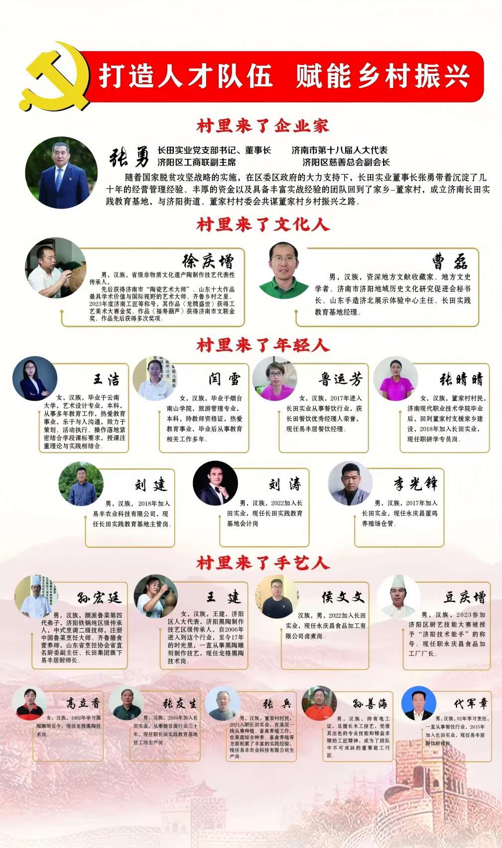 全面建設(shè)社會(huì)主義現(xiàn)代化國(guó)家,最艱巨最繁重的任務(wù)仍然在農(nóng)村。2024年12月,中央農(nóng)村工作會(huì)議在京召開,強(qiáng)調(diào)“健全推進(jìn)鄉(xiāng)村全面振興長(zhǎng)效機(jī)制”。在全面、長(zhǎng)效推進(jìn)鄉(xiāng)村振興過程中,人才是關(guān)鍵環(huán)節(jié)。以人才振興助推鄉(xiāng)村全面振興,要著力打造引才“強(qiáng)磁場(chǎng)”,培厚育才“營(yíng)養(yǎng)土”,奏響用才“交響樂”,凝聚起全面推進(jìn)鄉(xiāng)村振興的磅礴力量。在人才振興方面,長(zhǎng)田實(shí)業(yè)通過實(shí)施“引進(jìn)來”和“走出去”的策略,成功吸引了大批青年人才來到鄉(xiāng)村、建設(shè)鄉(xiāng)村、振興鄉(xiāng)村。