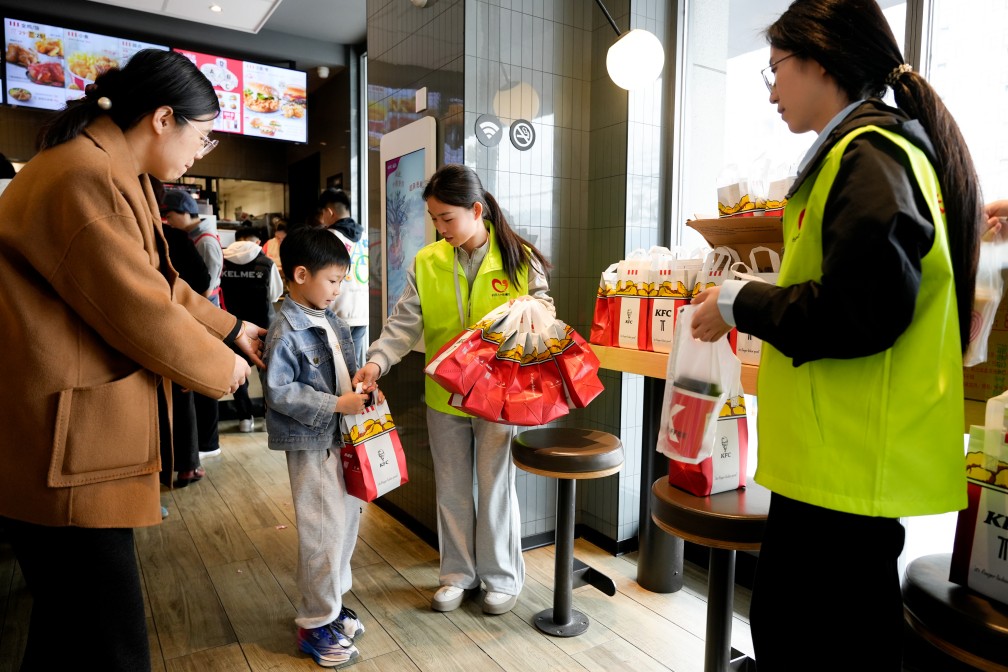 觀影結(jié)束后,肯德基正安路餐廳店為孩子們精心準(zhǔn)備了兒童套餐。“哇,是肯德基!”孩子們興奮地喊道,眼睛里閃爍著興奮的光芒??系禄墓ぷ魅藛T細(xì)心地為孩子們服務(wù),確保他們能盡情享受這次特別的用餐時(shí)光。