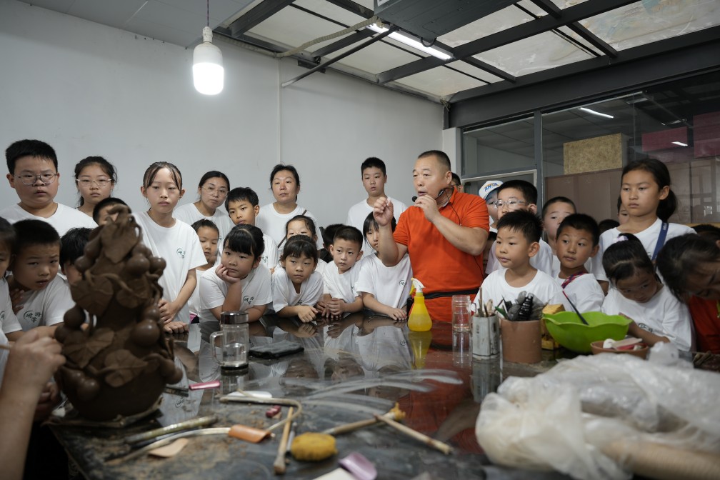 依托張勇勞模創(chuàng)新工作室,長田實(shí)業(yè)將非遺工坊與鄉(xiāng)村資源深度整合,開發(fā)了一系列黑陶研學(xué)課程,涵蓋“黑陶歷史探秘”“拉坯成型體驗(yàn)”“觀禮開窯儀式”等模塊。青年工匠化身研學(xué)導(dǎo)師,帶領(lǐng)學(xué)生從泥土的觸感中感受千年陶藝的溫度,在拉坯機(jī)的旋轉(zhuǎn)中感悟“人器合一”的匠心。