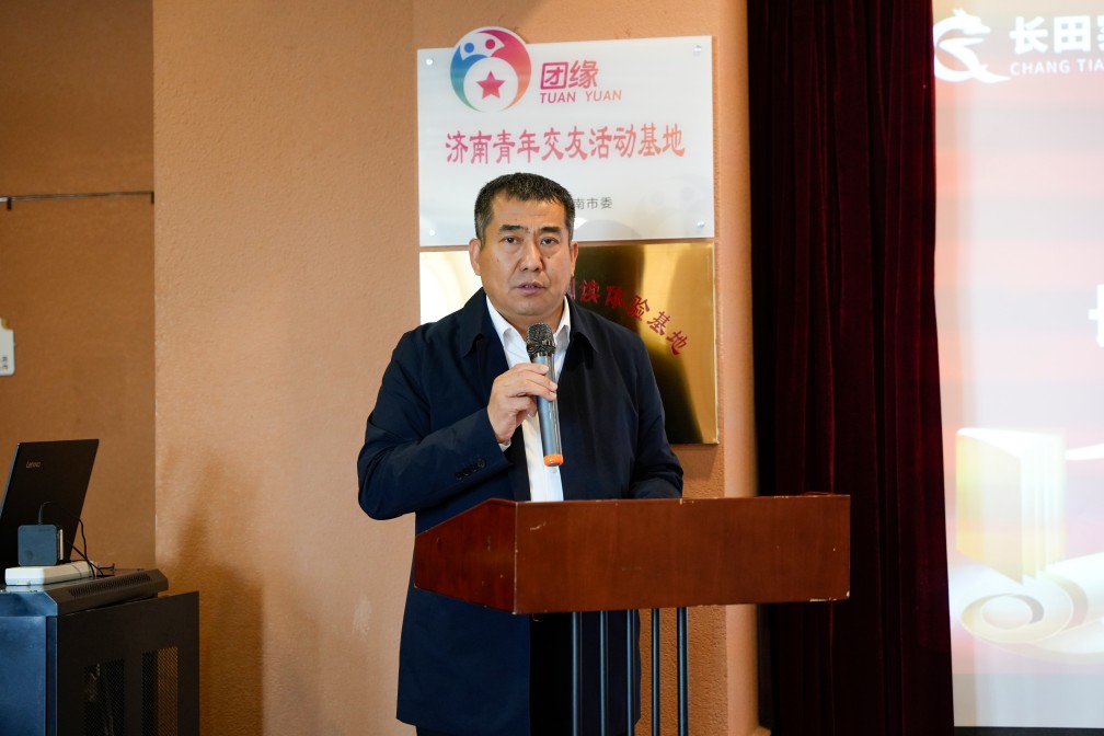 張總對(duì)各位領(lǐng)導(dǎo)、嘉賓的到來表示了熱烈的歡迎。他講到,長(zhǎng)田書屋的誕生,源于我們對(duì)“全民閱讀”號(hào)召的響應(yīng)、對(duì)“文化潤(rùn)城”的樸素信仰。近年來,長(zhǎng)田書屋通過持續(xù)舉辦讀書會(huì)、作家分享會(huì)、親子閱讀,參與“書香濟(jì)陽 閱見美好”全民閱讀月等各類文化活動(dòng),守護(hù)文化根脈、傳遞精神力量。長(zhǎng)田實(shí)業(yè)也始終關(guān)注鄉(xiāng)村閱讀,去年在長(zhǎng)田實(shí)踐教育基地設(shè)立了“長(zhǎng)田董家鄉(xiāng)村書屋”,作為長(zhǎng)田書屋的延伸。一方面將長(zhǎng)田書屋豐富的圖書資源引入鄉(xiāng)村,另一方面將鄉(xiāng)村民俗等本土文化元素融入城區(qū)活動(dòng),推動(dòng)城鄉(xiāng)閱讀陣地在資源共享中同頻共振。構(gòu)建起“城市有陣地、鄉(xiāng)村有支點(diǎn)、全域有書香”的立體化閱讀網(wǎng)絡(luò),讓文化的溫暖浸潤(rùn)市民心田。長(zhǎng)田書屋正式加入?yún)f(xié)會(huì),成為濟(jì)陽區(qū)首家會(huì)員單位,是一份榮譽(yù),更是一次“歸隊(duì)”。未來,長(zhǎng)田書屋將緊跟協(xié)會(huì)步伐,讓優(yōu)質(zhì)閱讀資源如活水般,流向濟(jì)陽的每個(gè)角落,助力全民閱讀走實(shí)走遠(yuǎn)。