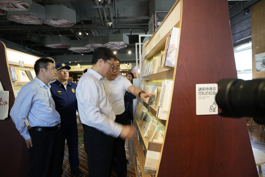 王區(qū)長對華百廣場進(jìn)行全面視察,先后前往必勝客、智航文具、長田書屋、半天妖烤魚、橫店影城等多家商戶。每到一處,他都細(xì)致詢問門店負(fù)責(zé)人假期客流趨勢、促銷活動安排及服務(wù)保障措施,并親切與商戶代表交流,了解經(jīng)營狀況與實際需求。在橫店影城,他特別關(guān)注節(jié)日檔期影片排片及觀影安全預(yù)案;在長田書屋,他駐足良久,查看書屋的運營情況,強調(diào)商業(yè)與文化的深度融合是提升城市品質(zhì)的關(guān)鍵所在。