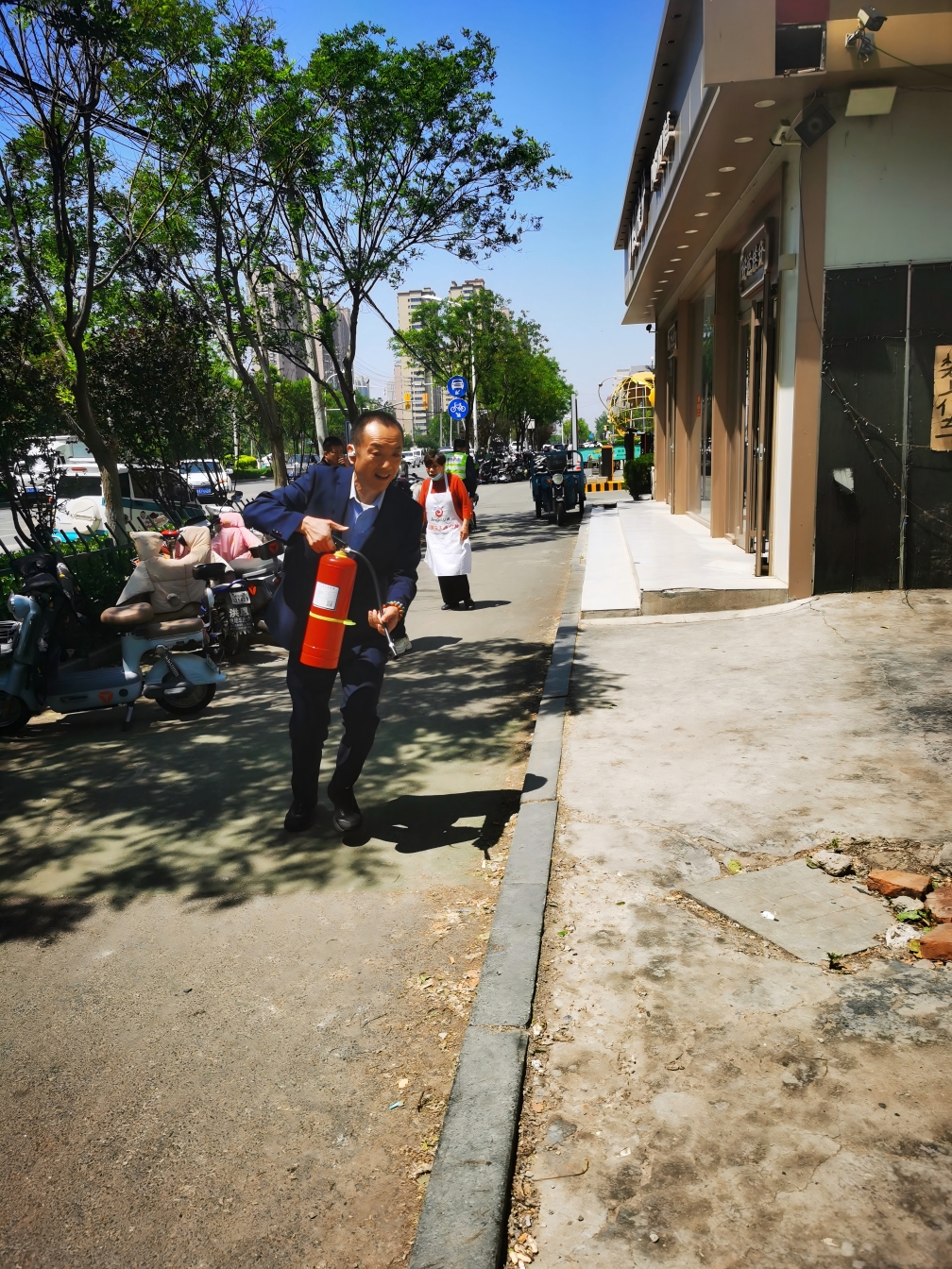 正如近期發(fā)生的一起火情,體現(xiàn)了長田物業(yè)人的臨危不亂與高效協(xié)作。5月11日,華百廣場東側(cè)一燒烤店鋪突發(fā)火情!店主驚慌失措,向華百廣場執(zhí)勤安保人員求助,安保人員馬上通過對講機(jī)通報火情。安保主管高君接到指令后,臨危不亂,立即啟動應(yīng)急預(yù)案,協(xié)調(diào)人員前往救火并報火警。到達(dá)現(xiàn)場后,發(fā)現(xiàn)涉事店鋪濃煙滾滾,且有火勢蔓延的趨勢。高君以及其他物業(yè)人員沒有絲毫退縮,第一時間全力投入到滅火作業(yè)中。從拔掉滅火器保險銷,到對準(zhǔn)火焰根部噴射,整個動作一氣呵成,規(guī)范嫻熟,干凈利落,精準(zhǔn)地控制了起火點(diǎn),抑制了火勢進(jìn)一步擴(kuò)大。與此同時,其他幾名隊(duì)員迅速行動起來,在現(xiàn)場周圍拉起警戒線,維持現(xiàn)場秩序,并通過大聲呼喊等方式通知附近的商戶遠(yuǎn)離現(xiàn)場,提醒他們注意安全,避免發(fā)生意外。