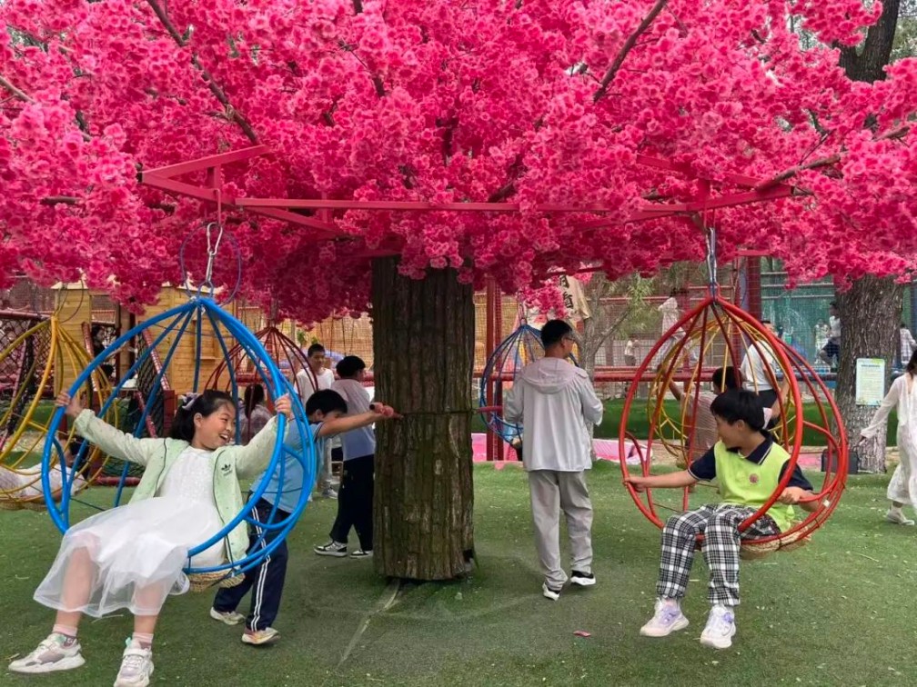 孩子們在林下樂園里盡情地釋放著自己的活力。他們在草地上奔跑嬉戲,像一群自由自在的小天使;他們在各種游樂設(shè)施間穿梭,歡聲笑語回蕩在整個樂園。陽光透過樹葉的縫隙灑在他們身上,形成一片片金色的光斑,仿佛是大自然為他們披上的一層美麗的紗衣。在這里,他們忘卻了所有的煩惱和疲憊,只享受著這片刻的自由和快樂。